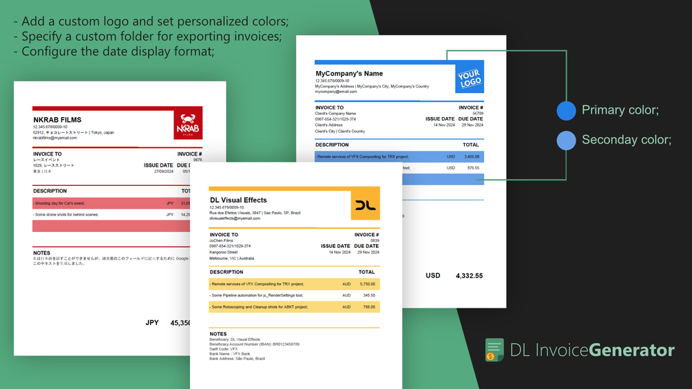 DL Invoice Generator is an automation app developed to create invoice files faster. It is useful for freelancers who need to generate invoices for clients worldwide and save them directly to their custom folders.